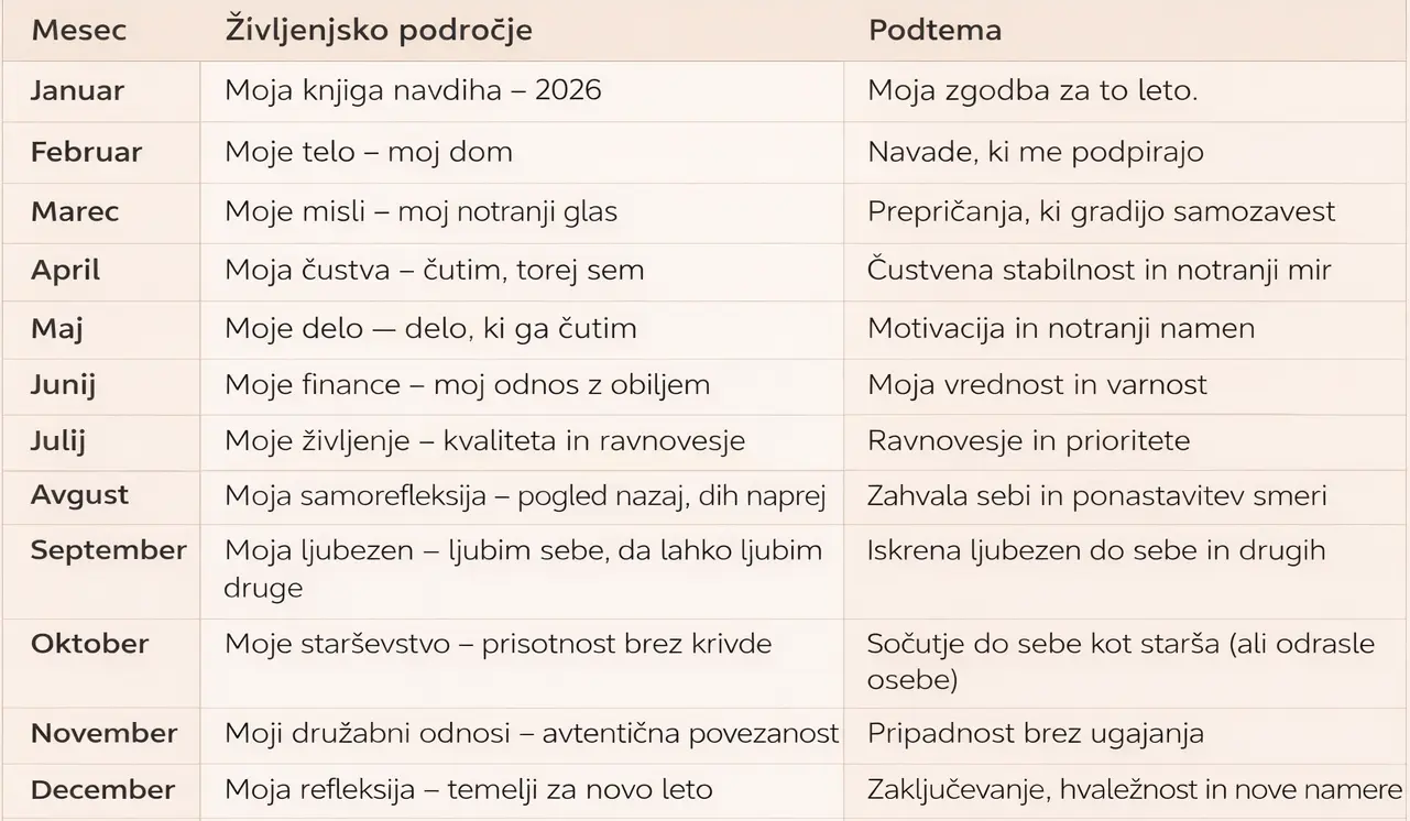 Vsak mesec se posvetimo eni temi, ki podpira tvojo celostno rast in notranjo stabilnost.